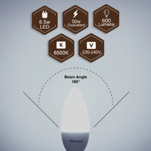 LED Candle Non-Dimmable Bulbs, E14, 6.5W=50w, 600LM, 6500K