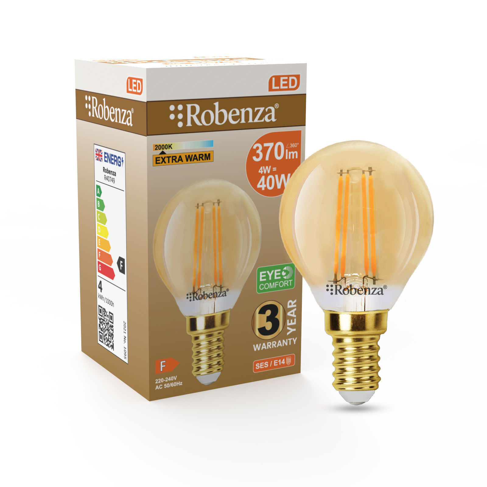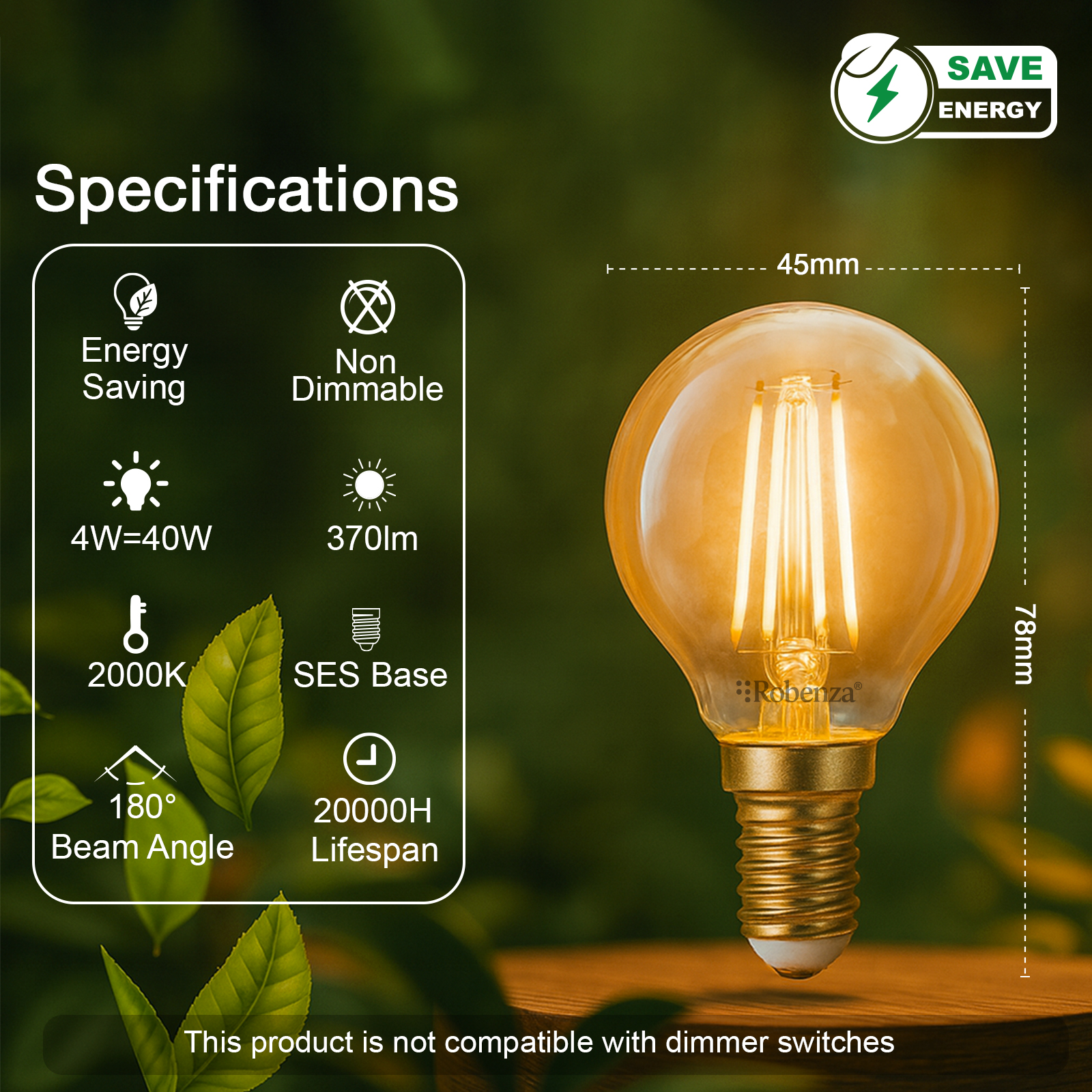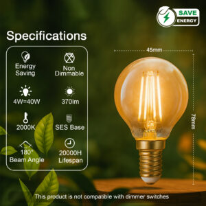 LED Filament Golf Non-Dimmable Bulbs, E14, 4W=40w, 370LM, 2200K
