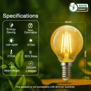 LED Filament Golf Non-Dimmable Bulbs, E14, 4W=40w, 470LM, 2700K