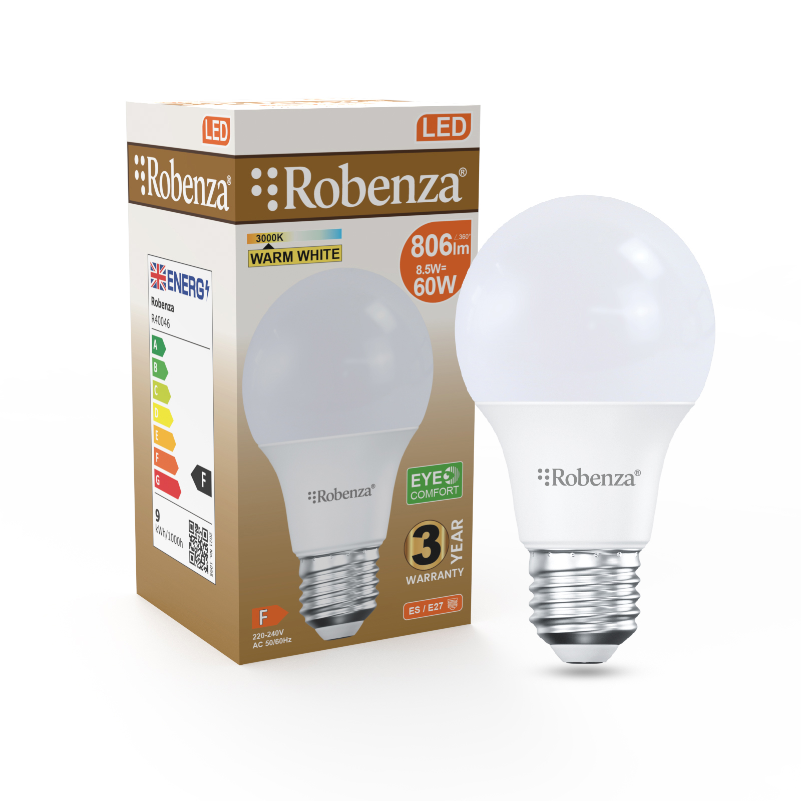 LED GLS Non-Dimmable Bulbs, E27, 8.5W=60w, 806LM, 3000K