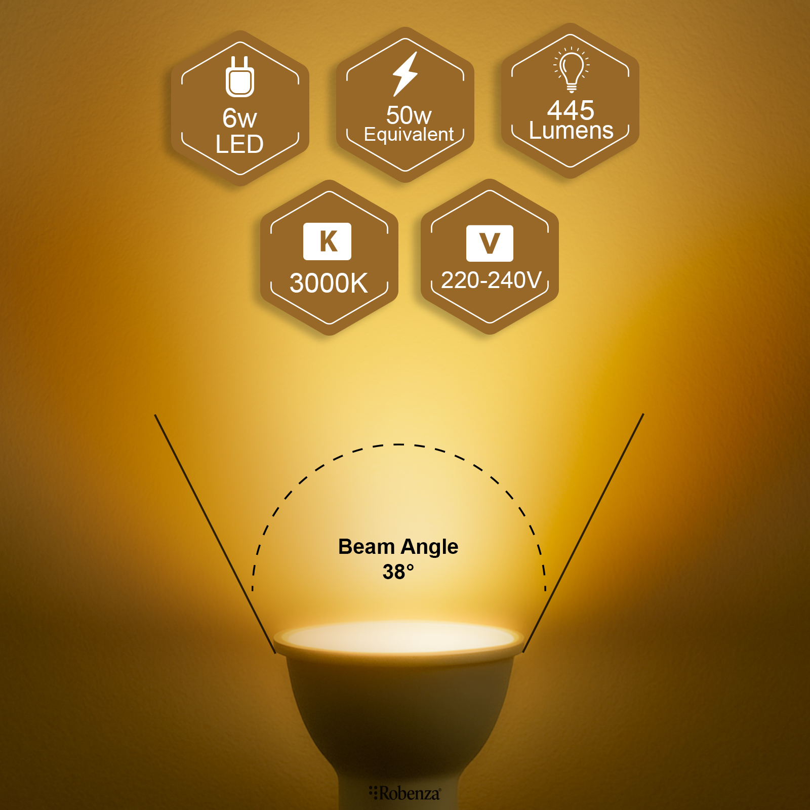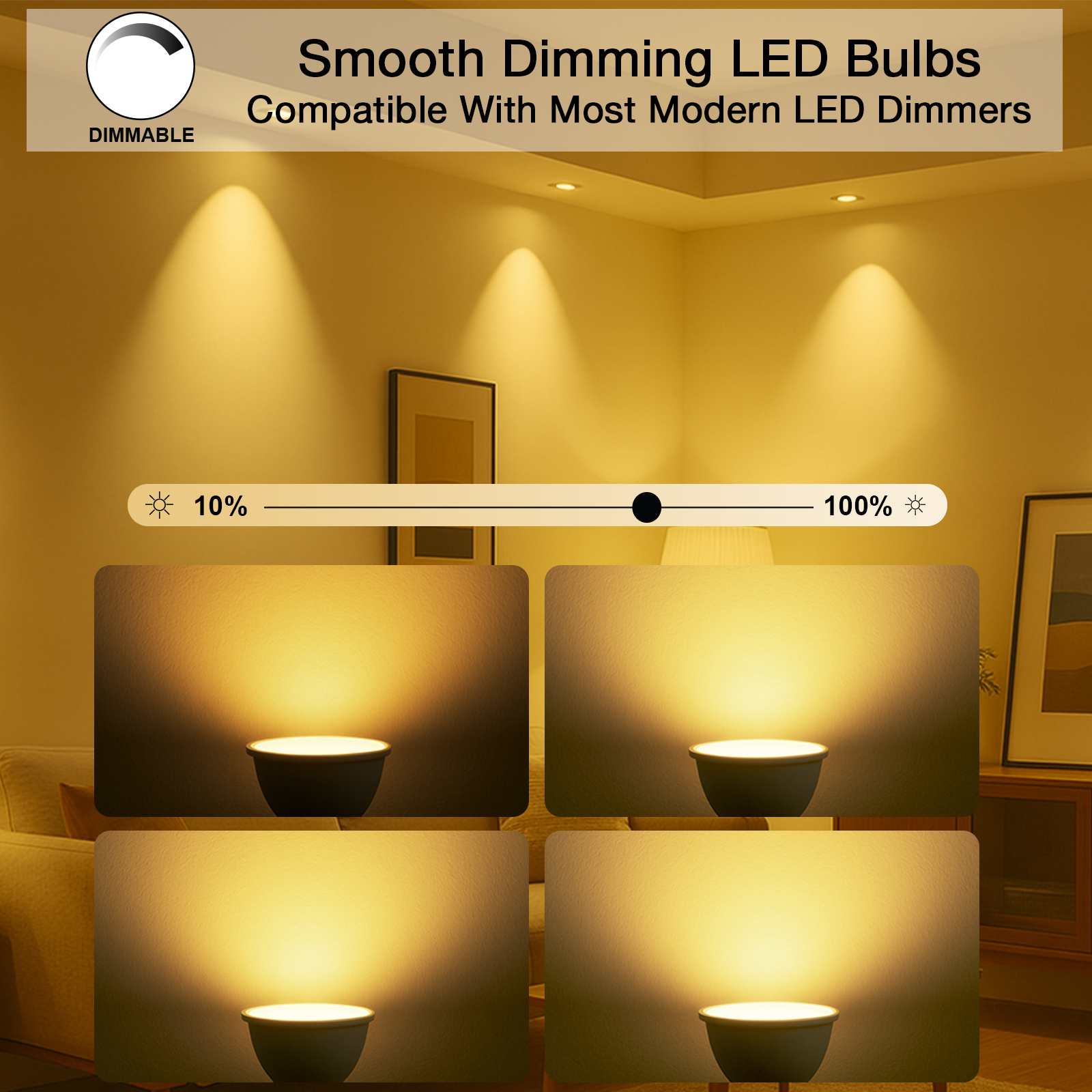 LED GU10 Dimmable Bulbs, 38°, 6W=50W, 445LM, 3000K