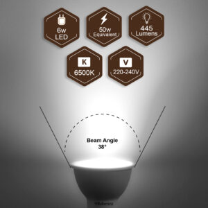 LED GU10 Dimmable Bulbs, 38°, 6W=50W, 445LM, 6500K