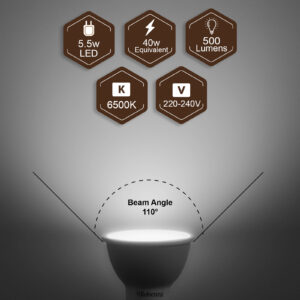 LED GU10 Non-Dimmable Bulbs, 110°, 5.5W, 500LM, 6500K